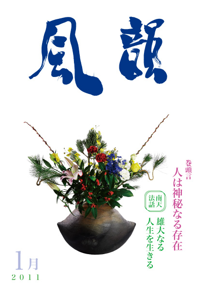 | 風韻誌 2011年1月号 巻頭言 「人は神秘なる存在」 南天法話 「雄大なる人生を生きる」 特別行事法話 「悠々と生きよう」 「商売繁盛と本当の信仰」 尾崎晃久 「新しい年に向けて」 木村純子 読者の広場・「祈りの実践行」(K・T) 「五井先生のお話は慈愛の光」 etc |