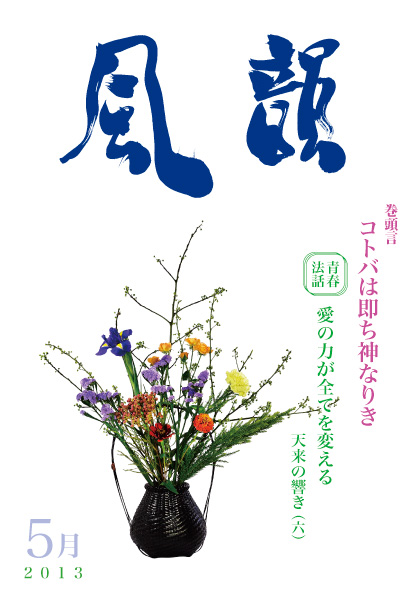 | 風韻誌 2013年5月号 巻頭言 「コトバは即ち神なりき」 青春法話 「愛の力が全てを変える 天来の響き(六)」 「低い周期の波を超えるには」 尾崎晃久 「いのち生き生きと―奈良法話会―」 木村純子 ビデオ上映会、法話会に参加しての感想 詩「春夜」Y・N 集会所だより 箕面集会 |