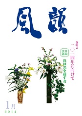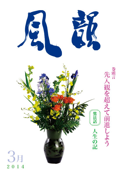 | 風韻誌 2014年3月号 巻頭言 「先入観を超え前進しよう」 鶯法話 「人生の記」 「神様のみ心の中に入る練習」 尾崎晃久 「最高の運の道」 木村純子 詩「冬の夜空」I・J 読者の体験談 新年祝賀法話会報告 |