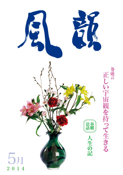 | 風韻誌 2014年5月号(最新号) 巻頭言 「正しい宇宙観を持って生きる」 鶯法話 「人生の記」 「自己の本心は仏様」 尾崎晃久 「やさしい悟りへの道」 木村純子 集会所だより 堺集会 読者の体験談 |