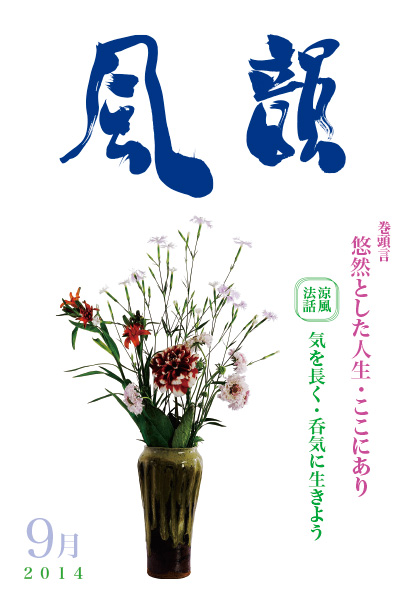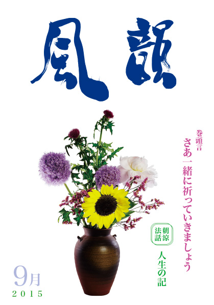 | 風韻誌 2015年9月号 巻頭言 「さあ一緒に祈っていきましょう」 朝涼法話 「人生の記」 読者の体験談 etc. |
