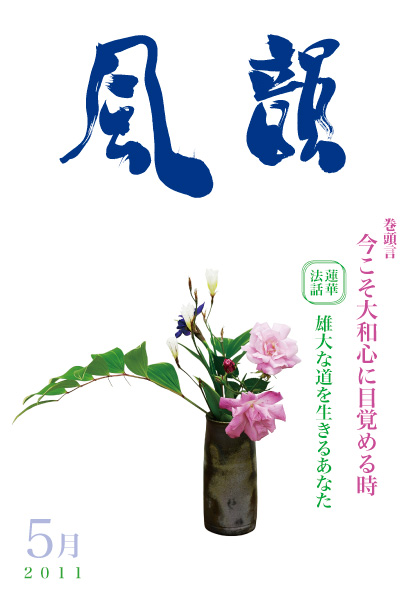 | 風韻誌 2011年5月号 巻頭言 「今こそ大和心に目覚める時」 蓮華法話 「雄大な道を生きるあなた」 「東日本大震災に寄せて」 五井先生のお話を聞く会の参加者の方たちの感想 「法然上人絵伝を見て」 尾崎晃久 「人間の想いと天変地変」 木村純子 体験談・「御心のままに」(K・T) 「芦屋法話会に参加して」(I・J) etc |