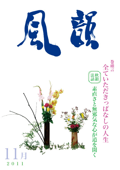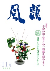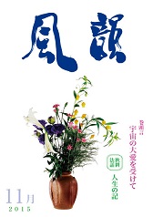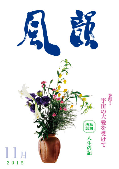 | 風韻誌 2015年11月号 巻頭言 「宇宙の大愛をうけて」 秋耕法話 「人生の記」 読者の体験談 etc. |