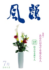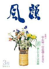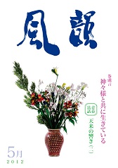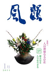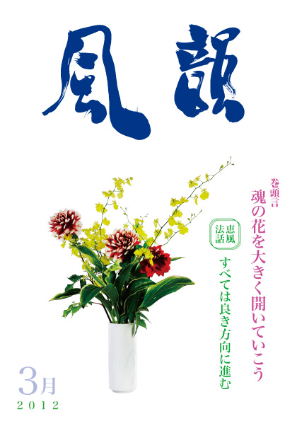 | 風韻誌 2012年3月号 巻頭言 「魂の花を大きく開いていこう」 恵風法話 「すべては良き方向に進む」 コスモス問答 「相手の天命完うを祈るとは」 「霊妙な波動へ変化しつつある地球世界」 尾崎晃久 新年祝賀法話会報告 体験談・「祈りの光は周囲をも輝かす」 「母を見習って」 「神様のみを認めきる一年に」etc |