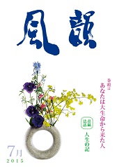 | 風韻誌 2015年7月号 巻頭言 「あなたは大生命から来た人」 青嵐法話 「人生の記」 「前後際断の生き方」 尾崎晃久 「本当は何も悪いものはない」 木村純子 読者の体験談 etc. |