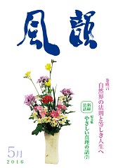 | 風韻誌 2016年5月号 巻頭言 「自然界の法則と等しき人生へ」 新緑法話 「やさしい真理の話(7)」 「主の祈りと世界平和の祈り」 尾崎晃久 読者の体験談 etc. |